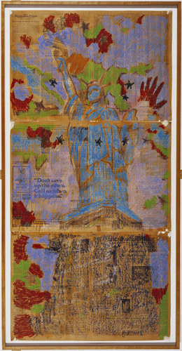 Buntstift auf 3 Zeitungsblättern / Crayon on 3 sheets of newspaper