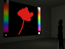Die wohl bekannteste Foto-Community im Netz, flickr.com, steht für eine neue, emanzipierte Generation von Konsumenten im Internet. Sie sind User, die Inhalte und Angebote selbst erzeugen, untereinander austauschen und frei im Netz verteilen. Die Arbeit evolvr nutzt diese Community und ihre Produkte, um assoziative Bildsequenzen zu erzeugen und öffentlich zu projizieren. Der Betrachter steht vor einem projizierten Großbild. Menüleisten links und rechts davon lassen eine Farbe mittels Laserpointer (dem drahtlosen Interface) und eine Strichstärke wählen. Mit diesem variablen farbigen Strich wird auf das projizierte Bild eine Zeile gemalt. Dieses Bild wird nun von einem Suchalgorithmus verwendet, um ähnliche Bilder im Internet zu finden und damit neue Bildfolgen zu initiieren. Die Farbverteilungen im Bild der vor Ort entstehenden Besucher-Zeichnungen werden von einem speziellen Algorithmus untersucht, um weitere passende Bilder mit ähnlicher Farbverteilung aus flickr.com zu finden. Das Bild mit dem höchsten Grad an farblicher Übereinstimmung wird mit dem ursprünglichen Bild überblendet und dient seinerseits wiederum als Grundlage für das folgende Bild. Der Besucher wird zum Maler, macht seine eigene farbige Zeichnung und löst damit eine Kette anderer Bilder aus, die im Netz von anderen Nutzern zur Verfügung gestellt wurden.
